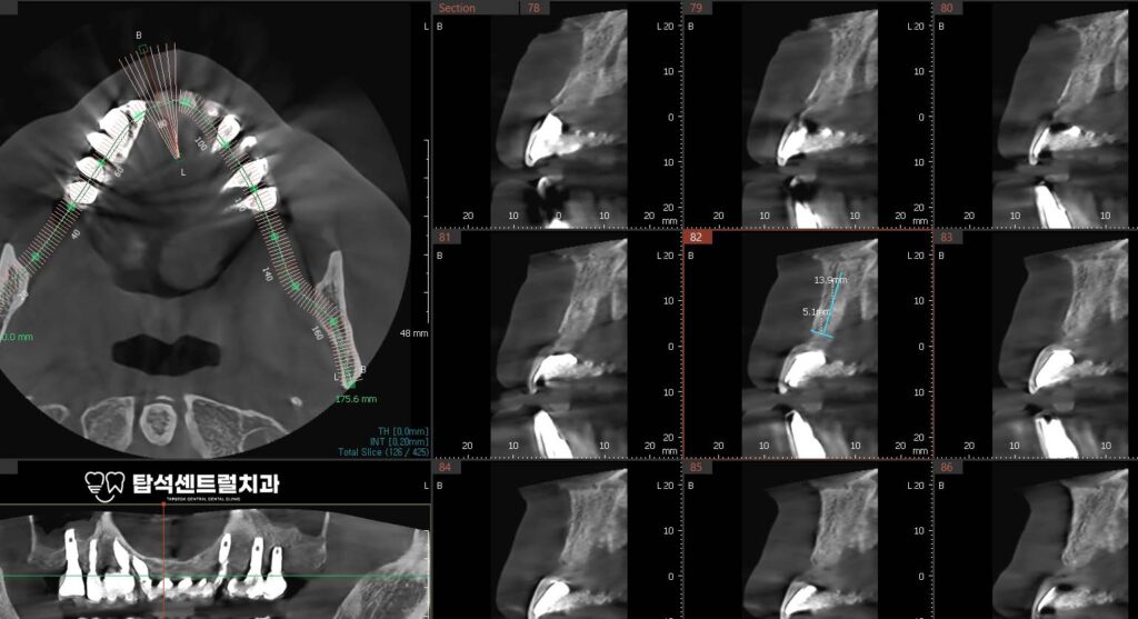 다행히, 왼쪽 위턱의 송곳니는 상태가 양호하여